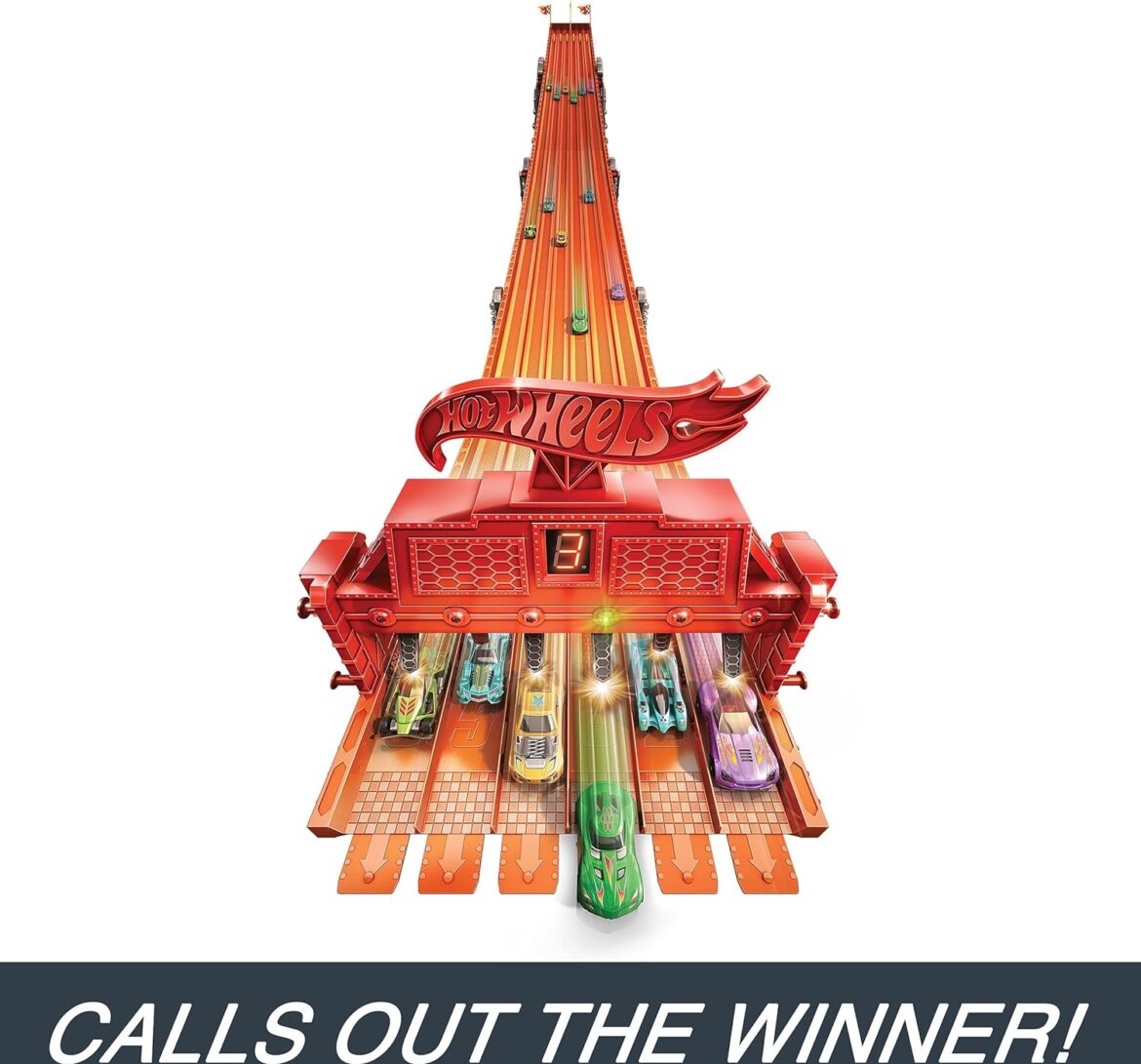 Gone are the days of struggling with bulky race tracks. The Hot Wheels Super 6-Lane Raceway offers a practical solution with its foldable track design. When you’re done racing, simply fold the 8ft track flat and store it away conveniently. This quick setup and easy storage feature allows you to enjoy the raceway without any hassle.