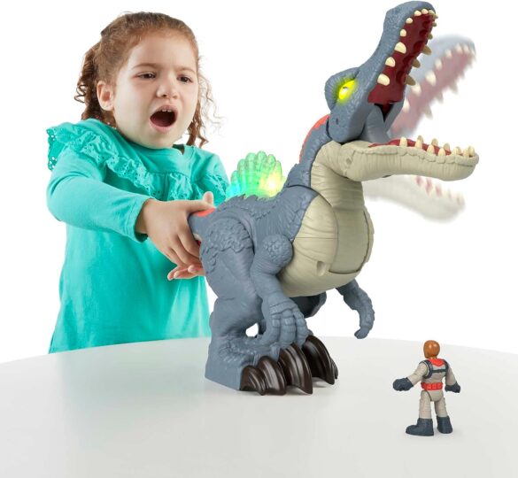 What’s a dinosaur without its iconic roar? This Spinosaurus toy comes with cool dinosaur sounds that further immerse your child in their Jurassic World adventures. The realistic sounds will make your child feel like they’re right in the middle of the action.